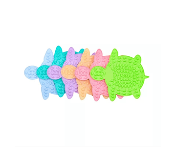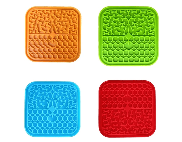 Este modelo tiene dos texturas, para alimentos mas enteros y para pastas o alimentos húmedos, además tiene pequeñas ventosas en la parte posterior que sirven para adherirse a distintas superficies. Ideal para distraer a tu mascota durante un baño o el corte de uñas.